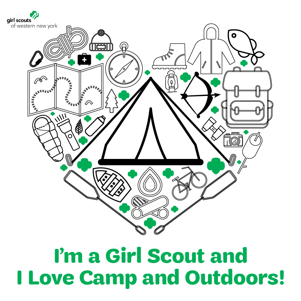 - Wear your favorite camp gear. Take a photo in your favorite Girl Scout Camp gear and send a photo and/or share your favorite camp story by emailing it to: communications@gswny.org. Also, post the: I’m a Girl Scout and I love Camp and Outdoors graphic to your social media to let everyone know your love of the outdoors.