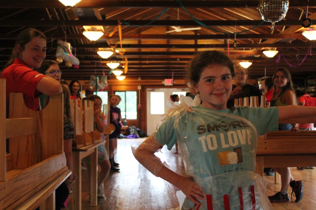 After breakfast they went back up to clean their units. They were up there until lunch because of the rain. After lunch they all got to do some group activities together. The first was a trash bag fashion contest. The groups got trash bags, duct tape, and markers and had to come up with a sensational outfit that was presented in a fashion show.
